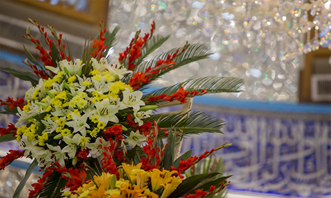 ونقلت شبكة الكفيل العالمية أن الزهور والشتلات تعد من أجود أنواع الزهور وأثمنها، حيث يتم تصنيفها بأشكال فنية جميلية تنشر فوق الشباك الشريف على شكل أكاليل، ويحتوي كل إكليل منها على مجموعةٍ متناسقة من الزهور كذلك تم نشر أكاليل أخرى عند مدخل الحرم الطاهر .