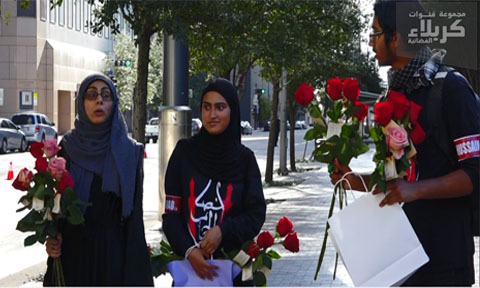 من جهتها بينت انسيا الزيدي احدى المشاركات في المسيرة، قمنا بتوزيع باقات ورد للمواطنين الاميركين فضلا عن بطاقات تعريفية بالامام الحسين عليه السلام والقضية الحسينية الخالدة، مشيرة الى ان المنظمين قاموا بعرض لقطات تلفزيونية من خلال عارضات محمولة على سيارات متنقلة توضح قيم ومبادىء الامام الحسين عليه السلام وثورته الخالدة .