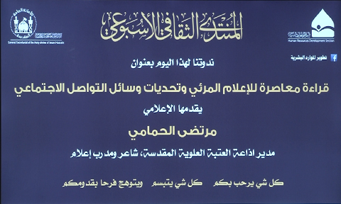 الإعلام وتحدياته ندوة للمنتدى الثقافي الأسبوعي للعتبة الحسينية المقدسة .