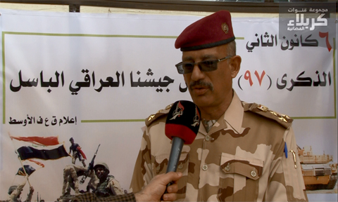 من جهته ذكر العميد محمد مراد لفتة مدير قسم الحشد الشعبي في قيادة عمليات الفرات الأوسط لموقع قناة كربلاء الفضائية الالكتروني أن" الجيش العراقي هو سور الوطن وهو الدرع الحصين أمام المعتدين والمخربين والإرهابين ونعاهد شعبنا العظيم بأن نكون جنودا أوفياء للسهر على أمن وأمان الوطن".