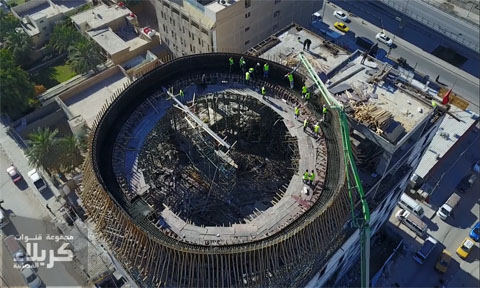 وأضاف " تعلو بناية المركز قبة من الهيكل الحديدي، وتم إكمال الهيكل الخرساني بالكامل"