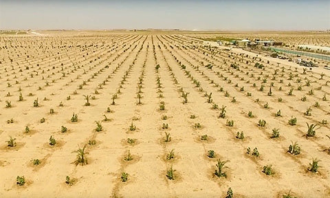 مشيرا إلى أنه تم استثمار 500 دونم في الوقت الحالي كمرحلة أولى لزراعة 16 ألف فسيلة من الأصناف المميزة ذات القيمة الاقتصادية العالية في السوق العالمي والمحلي؛ كالبرحي والمكتوم والمطوك والشويثي ومير حاج والجوزي وغير ذلك، لافتا إلى أن إدارة المشروع قد استثمرت المسافات بين صفوف النخيل لزراعة أشجار الفواكه والرمان والزيتون والسدر (النبق) وأشجار أخرى، فضلا عن زراعة محصولي الرقي والبطيخ في أول تجربة في هذا العام من خلال استثمار مياه التقطير التي تروى بها الفسائل، وأثبتت الأرض نجاحها في زراعة هذه المحاصيل من الخضر.