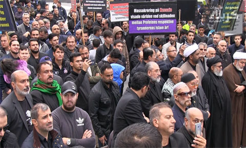 ورفع المشاركون لافتات ورددوا هتافات باللغتين الإنكليزية والسويدية تقف إلى جانب المظلومين في كل بلدان العالم ضد الظلم والطغيان وهو ما يعزز استمرار ثورة الإمام الحسين (عليه السلام) في كل مكان وزمان.