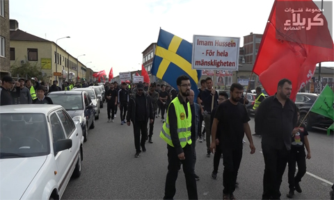مسيرة حاشدة تجوب شوارع مالمو السويدية إحياء لذكرى شهادة الإمام الحسين عليه السلام.