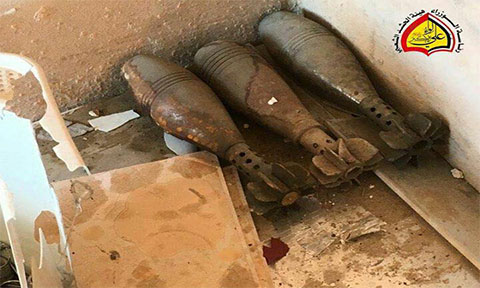 وقال آمر اللواء الحادي عشر في الحشد الشعبي ، ان “قوات اللواء عثرت اليوم الخميس على انفاق تابعة لكيان داعش الإجرامي واكداس لقنابر الهاون في قرية عين طلاوي في المحور الغربي للموصل”.