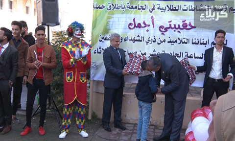 كرم قسم النشاطات الطلابية في جامعة كربلاء بالتعاون مع (فريق عطاء الطلبة الإنساني) نخبة من طلبة المدارس من أبناء الشهداء، من خلال مشروع (حقيبتي أجمل) بمشاركة طلبة الجامعة وأساتذتها.