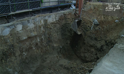 الطواقم الهندسية تباشر بأعمال حفريات سرداب القبلة الكبير في العتبة الحسينية المقدسة.