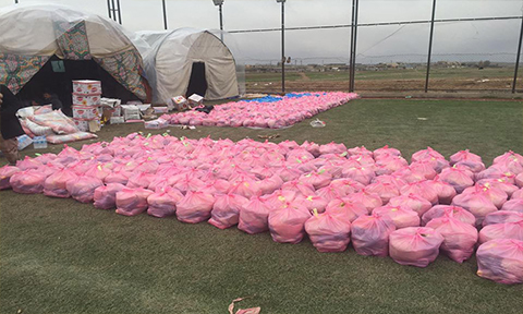 10000 نازح من الموصل تصلهم مساعدات غذائية وإنسانية لأكبر قافلة من كربلاء المقدسة .