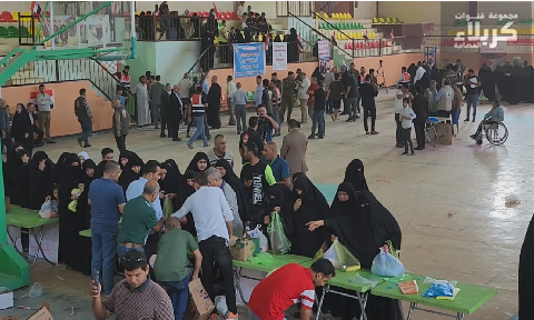 نظم أصحاب المواكب الحسينية والمؤسسات والمنظمات الخيرية سوق الوفاء الخيري الثاني والعشرين المجاني في قضاء الحي جنوب محافظة واسط .