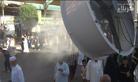 وذكر نائب الأمين العام للعتبة الحسينية المقدسة الدكتور علاء ضياء الدين أن" ملاكات العتبة الحسينية المقدسة تعمل على تقديم أفضل وأجود الخدمات للزائرين القادمين إلى مدينة كربلاء المقدسة لاسيما مع ارتفاع درجات الحرارة التي بدأت تقترب من الخمسين مئوية، إذ عملت شعبة التبريد على نشر مرشات المياه في الشوارع القريبة من الحرم المطهر".