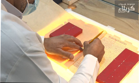 وبين الأستاذ مناف التميمي مدير المركز لقناة كربلاء الفضائية أن : ( خزانة العتبة الحسينية المقدسة كما يسمونها هنا تعمل على ترميم المخطوطات ورقيا بإضافة مواد كيميائية و محاليل دون المساس بالنص بالإضافة أو التعديل و تقديمها مجانا للمحققين) .
